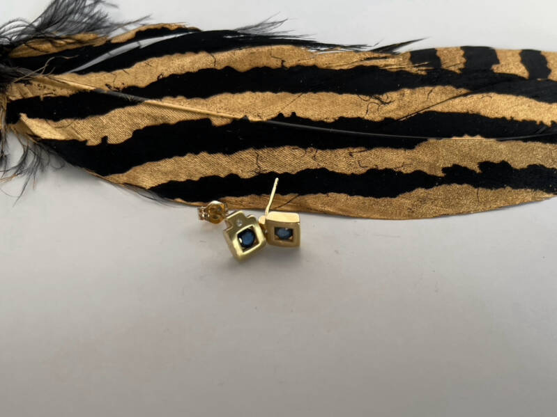 14k Geelgouden oorknoppen met saffier en 10x 0.37crt briljanten
